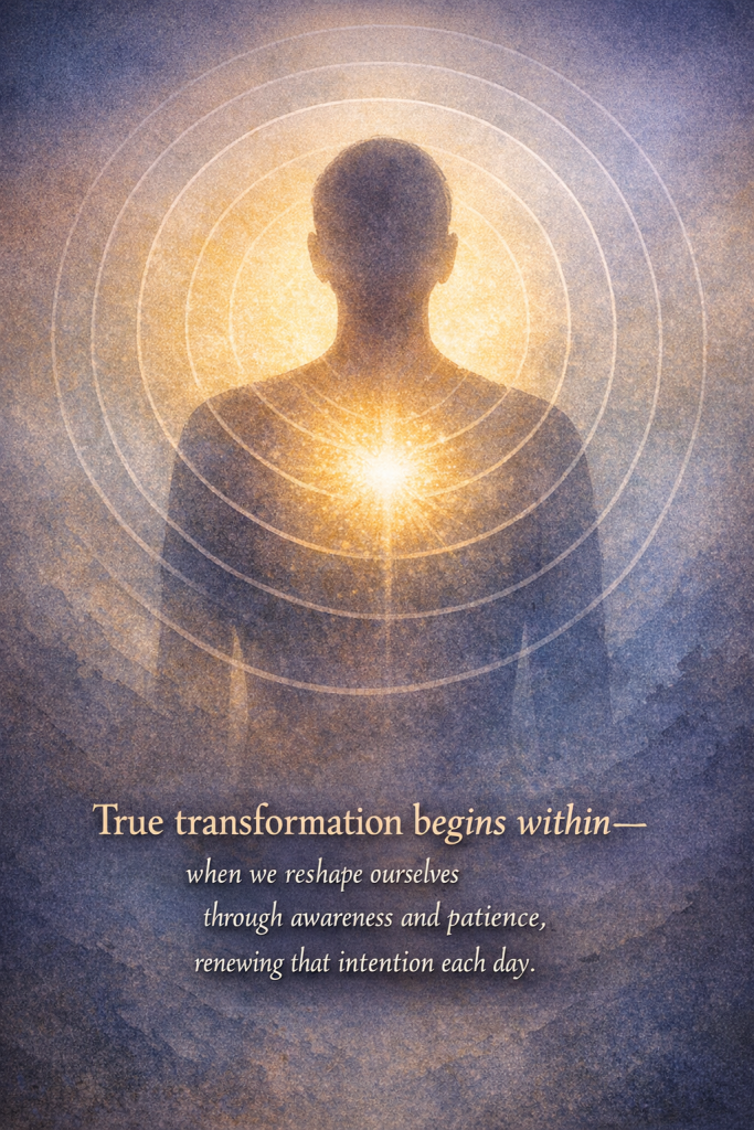 True transformation arises when we turn inward, reshaping the self with awareness and patients, renewing that effort each day.